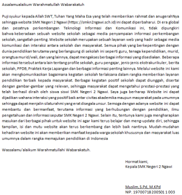 Sambutan Kepala Sekolah